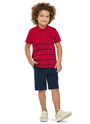 Conjunto Infantil Menino Polo Listrado Vermelho