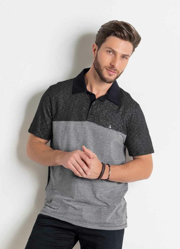 Outlet - Camisa Polo Preta e Listrada com Bordado Actual