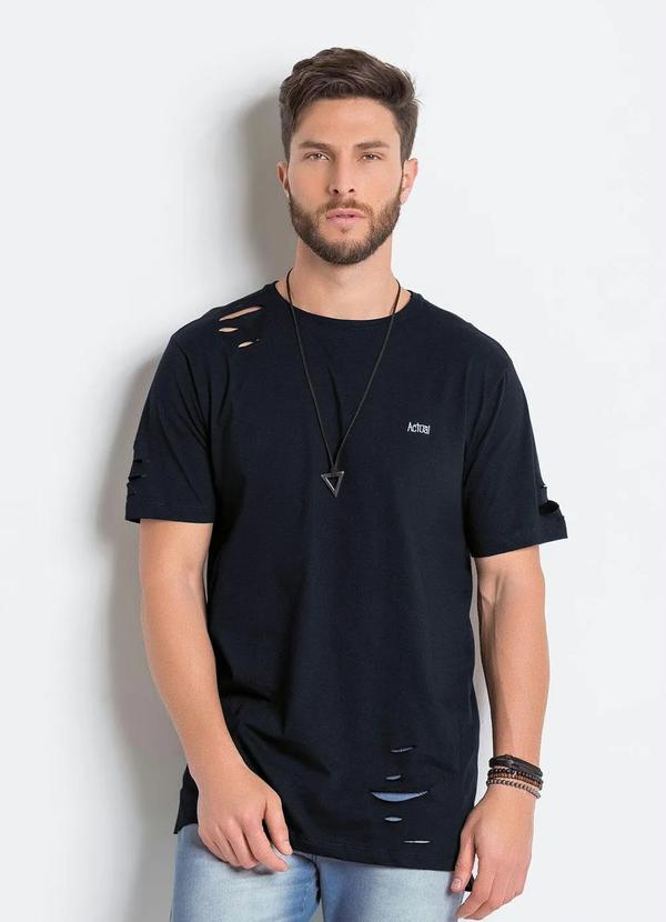A camiseta longline é mais comprida e ganha ainda mais atitude com os detalhes destroyed desse modelo Actual. Por ser preta, ela combina com calças jeans claras ou bermudas estampadas. Ouse no visual diário com essa peça.