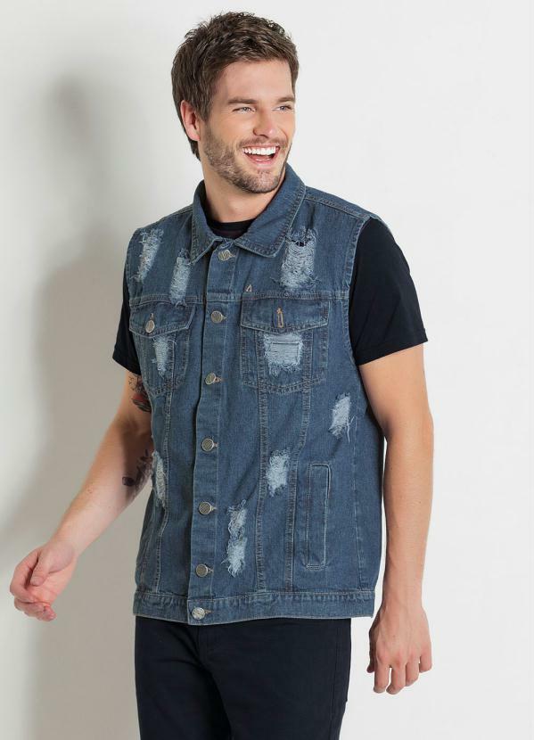Outlet - Colete em Jeans Azul Destroyed Actual