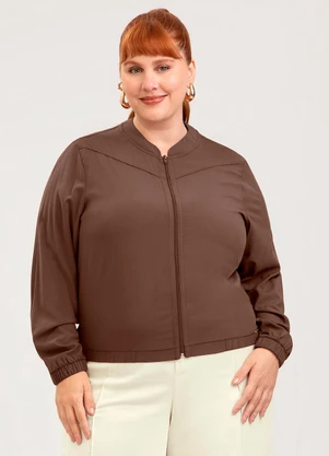 Cativa - Jaqueta Plus Size em Viscose  Marrom Escuro - CATIVA