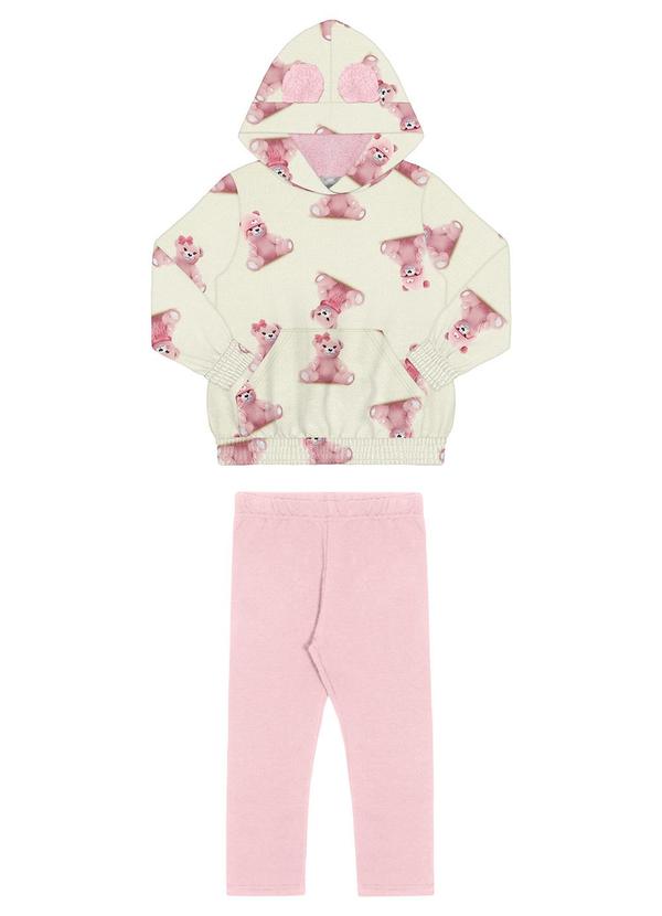 Alakazoo - Conjunto Infantil Menina com Blusão Estampado Rosa