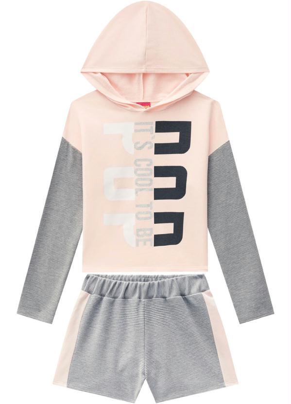 Composição: Casaco corpo e capuz 100%alg manga 81%alg 17%polie 2%elast, short 81%alg 17%polie 2%elast
