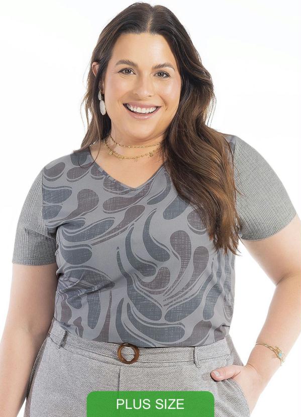 Cativa Plus Size - Blusa Manga Curta Plus Size Cinza