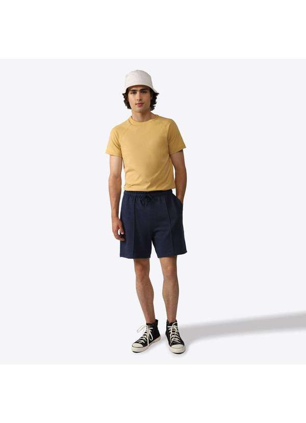 Basicamente - Bermuda Moletom Desfibrado Friso Masculina Azul Marinho