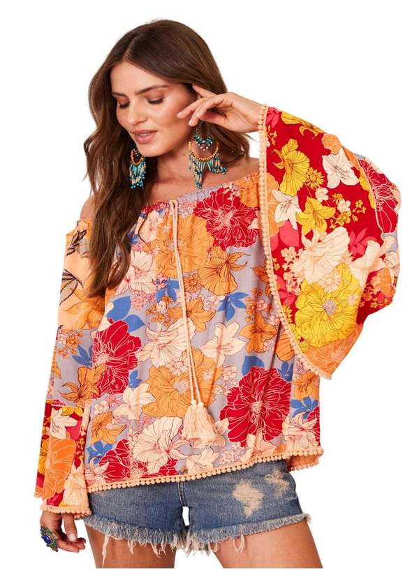 A Bata Ciganinha da Yacamim traz um charme artesanal e autêntico para o seu estilo. Confeccionada em 100% viscose, essa peça leve e fluída apresenta uma modelagem romântica e cheia de personalidade. O destaque fica por conta do cordão de regulagem com pompons, permitindo um ajuste perfeito ao corpo, além das mangas flare com babado nos punhos e detalhes em franjinhas na barra e nos punhos, que adicionam um toque boho e sofisticado. Destaques da peça: Modelagem ciganinha com ombros à mostra. Mangas flare amplas com babado nos punhos. Cordão de regulagem com pompons decorativos. Detalhes em franjinhas na barra e nos punhos. Estampa patchwork exclusiva, garantindo um visual único. Tecido leve e confortável, ideal para diversas ocasiões. Sobre a confecção: Essa bata é produzida pela Yacamim, uma marca 100% nacional que valoriza a qualidade e o acabamento impecável de cada peça. As peças com estampa patchwork são tingidas artesanalmente, tornando cada uma delas única. Devido à iluminação e ao processo fotográfico, a tonalidade do produto pode apresentar pequenas variações em relação às imagens exibidas no site. Atenção: Os acessórios utilizados nas fotos não acompanham o produto. Instruções de lavagem: Lavar à mão ou na máquina, utilizando ciclo suave. Não utilizar cloro ou produtos derivados. Secar à sombra para preservar as cores. Passar a ferro em temperatura baixa. Não lavar a seco. Medidas da modelo: Altura: 1,72m Busto: 89 cm Cintura: 63 cm Quadril: 88 cm Adicione um toque boho-chic ao seu guarda-roupa com a Bata Ciganinha Yacamim, perfeita para criar looks leves e cheios de estilo..