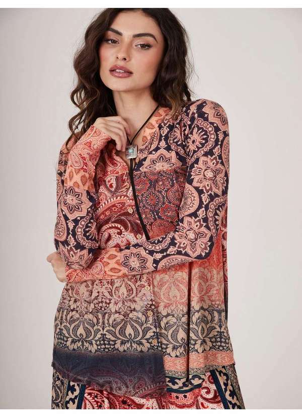 A Bata Viscolinho Mangas Justas Cashmere Yacamim é a união perfeita entre leveza, conforto e um toque artesanal cheio de charme! Confeccionada em 79% Viscose, 14% Linho e 07% Elastano, essa peça garante um caimento fluido, toque suave e ajuste confortável, valorizando o corpo sem abrir mão da liberdade de movimento. As mangas longas justas trazem elegância, enquanto os botões de coco adicionam um detalhe rústico e sofisticado à composição. A estampa cashmere completa o design, dando personalidade e estilo para diversas ocasiões, do look casual ao mais elaborado. Confeccionado pela marca Yacamim, 100% nacional. Acessórios apresentados nas fotos não acompanham o produto anunciado. Em virtude da iluminação e outros fatores, ao receber seu produto ele pode apresentar variações de tonalidade, dando a impressão de diferença entre o produto recebido e o exibido no site. Composição do Tecido: 79% Viscose, 14% Linho e 07% Elastano. Instruções de Lavagem: Lavar à mão ou na máquina, utilizando ciclo suave Não utilizar cloro ou derivados Secar à sombra Passar a ferro em temperatura baixa Não lavar a seco Medidas da Modelo: Altura: 1,71 m Busto: 85 cm Cintura: 60 cm Quadril: 90 cm.