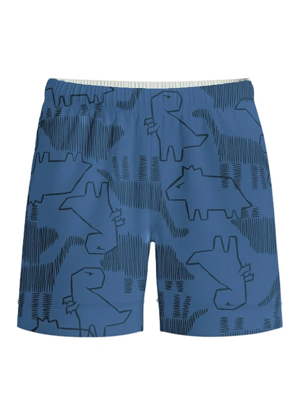 Malwee Kids - Bermuda Dinossauros em Microfibra Azul Escuro