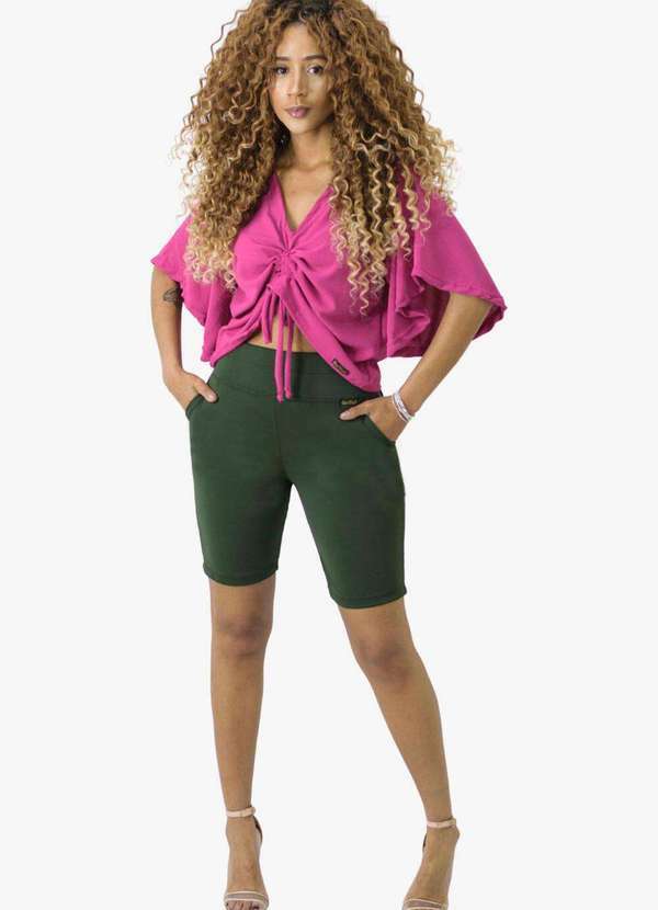 Looks Catwalk - Bermuda Feminina com Bolso Shorts Moda Tendência Verão - Verde