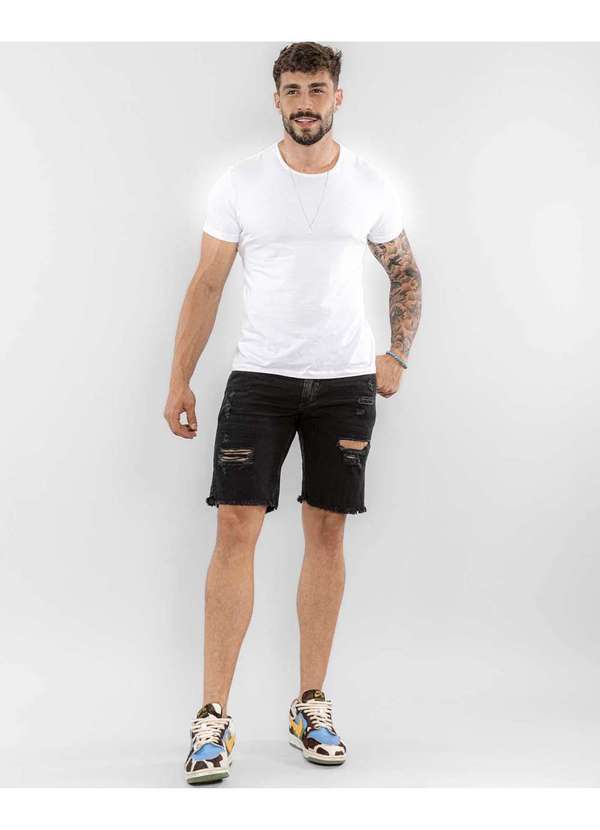 Consciência - Bermuda Jeans Masculina com Elastano e Barra Desfiada Preto