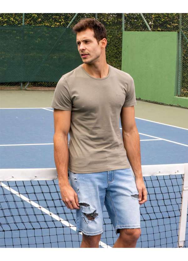 Consciência - Bermuda Jeans Masculina Rasgada Linha Man Style com Elastano Azul