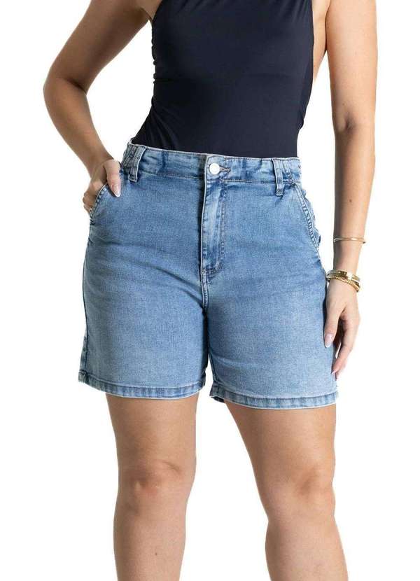 Bermuda confeccionado em jeans. Modelagem moderna e confortável para todas as ocasiões. Cintura alta Fechamento com botão e zíper Bolsos frontais faca posterior funcionais Barra simples Tecido: Jeans Tipo de lavagem: Azul Cor: Azul claroComposição: 80% ALGODÃO 18%POLIÉSTER 02% ELASTANO