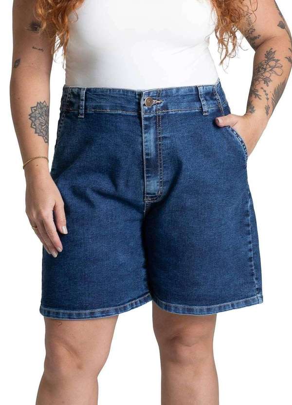 Bermuda plus size confeccionado em jeans. Modelagem moderna e confortável para todas as ocasiões. Cintura alta Fechamento com botão metálico e zíper Bolsos frontais faca e bolsos traseiros funcionais Barra simples Modelagem: Plus size Tecido: jeans Tipo de lavagem:Azul Cor: Azul médioComposição: 82% ALGODÃO 16% POLIÉSTER 02% ELASTANOTipo de lavagem: CIDADE VERDE