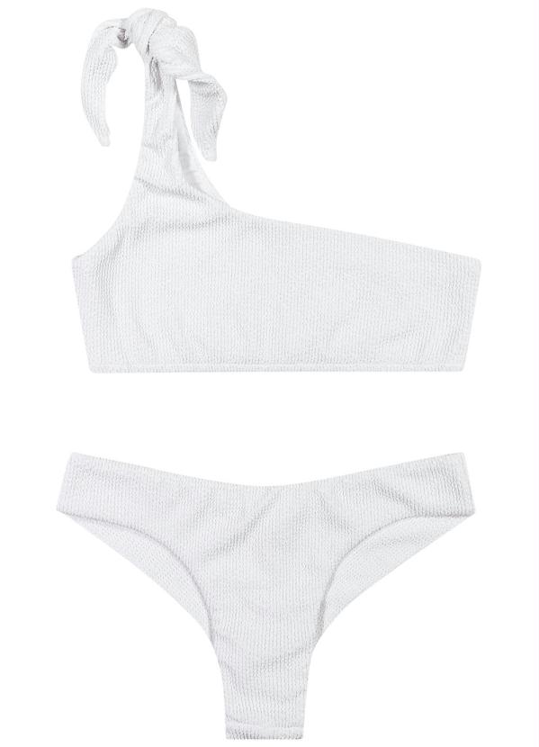 Enfim - Biquíni Branco Assimétrico Malha Uv Beach