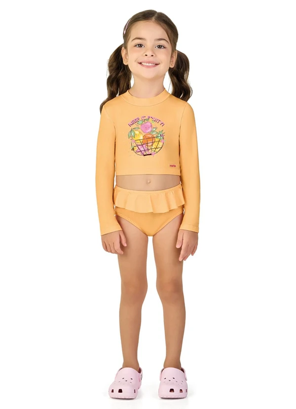 Marlan - Biquíni Manga Longa e Tanga Proteção Uv Laranja