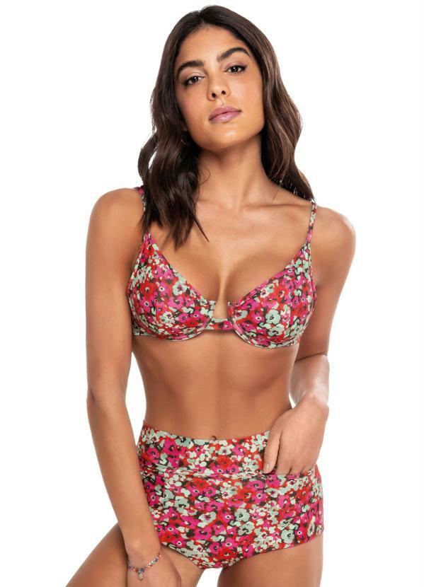 Enfim - Biquíni Rosa Floral Hot Pants Beach