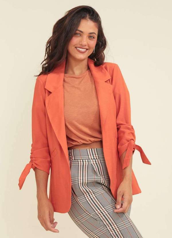 O Blazer de Alfaiataria Crepe Puxador é perfeito para mulheres que buscam um visual elegante e sofisticado. Feito em crepe, 91% Viscose e 9% Poliéster. Com um design alongado e fashion, esse blazer pode ser usado de diversas formas, combinando com calças, saias ou vestidos. Suas mangas 7/8 com puxadores para amarração dão um toque de estilo único e seus bolsos decorativos são um charme à parte. Além disso, esse blazer é ideal para ser usado em qualquer estação do ano, pois é leve, sem forro. Você pode usá-lo durante o dia ou à noite, tanto em ocasiões mais formais quanto em eventos informais. Garanta já o seu Blazer de Alfaiataria Crepe Puxador e esteja sempre elegante e na moda.