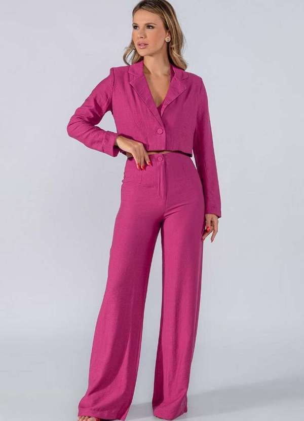 Lamis - Blazer Curto Viscose um Botao Rosa Fucsia