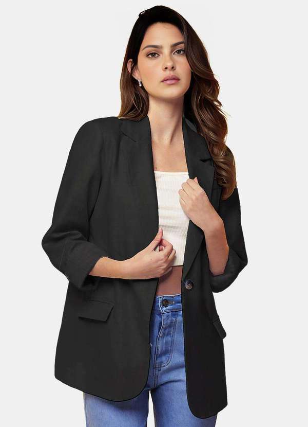 Detalhes: Blazer feminino de vicose lisa sarjada. Peça forrada por inteiro, em tecido liso, com ombreiras finas para estruturar os ombros. Fechamento frontal com 1 botão marmorizado. Tecido texturado peso médio, macio. Modelagem alongada, cobre o quadril, com mangas levemente mais soltas para usar dobrada. Bolsos frontais verdadeiros. Para peças de alfaiataria, os bolsos vem fechados na costura para não deformar, desfaça a costura delicadamente.