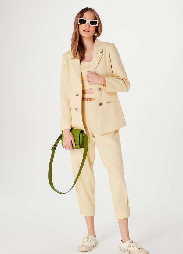 Hering - Blazer Feminino Reto Alongado em Linho Amarelo