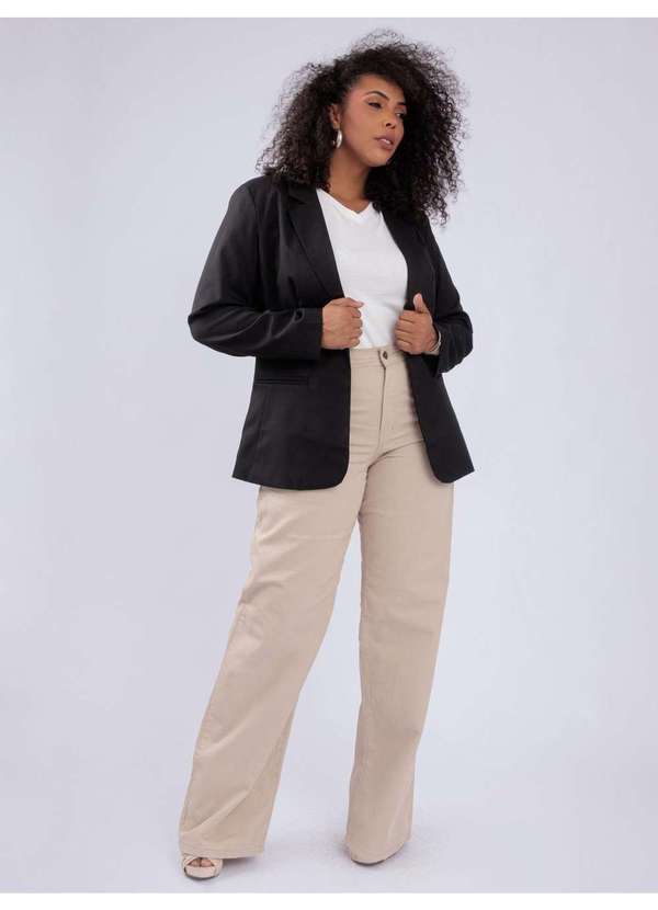 Blazer com ombreira, bolsos decorativos, forrado, com fechamento 1 botão. Confeccionado em Poliéster, elástano. Forro confeccionado em poliéster e elástano. Guia de Medidas: 44 ¿ Busto 108cm | Cintura 128cm | Comprimento 75cm 46 ¿ Busto 110cm | Cintura 130cm | Comprimento 75cm 48 ¿ Busto 112cm | Cintura 134cm | Comprimento 76cm 50 ¿ Busto 114cm | Cintura 140cm | Comprimento 78cm Composição: 95% Poliéster 5% Elástano Forro: 97% Poliéster 3% Elástano