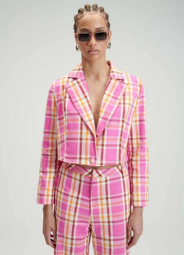 My Favorite - Blazer Xadrez Alfaiataria Cropped A0147