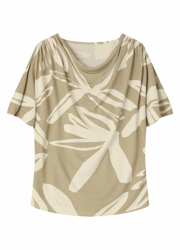 Malwee - Blusa Ampla Folhagem em Viscolinho Areia