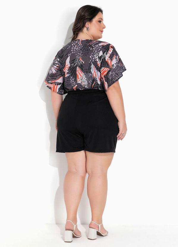 Marguerite - Blusa Animal Print Cinza com Mangas Plus Size