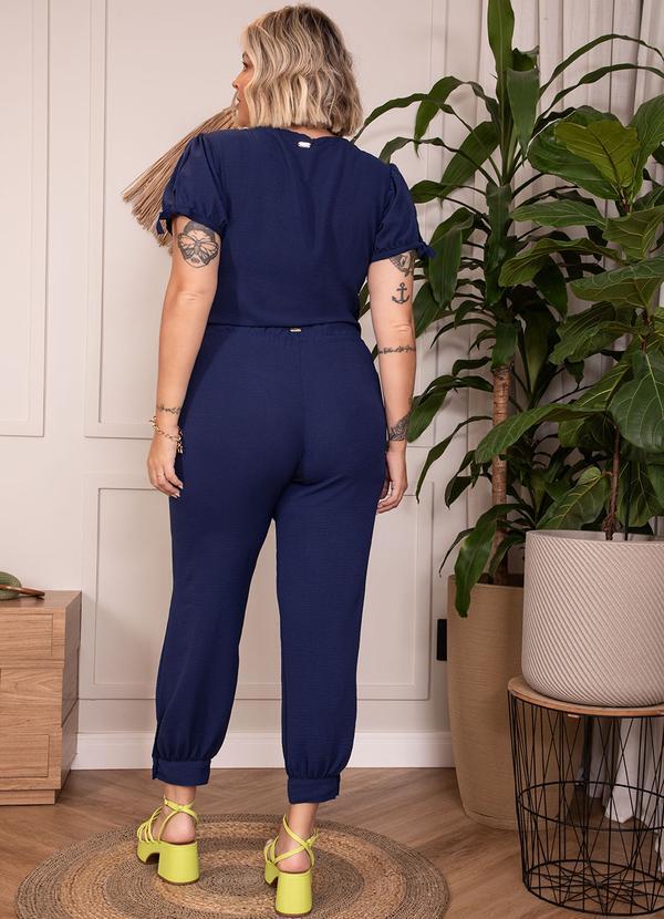 Quintess - Blusa Azul e Lima com Detalhe de Amarrar