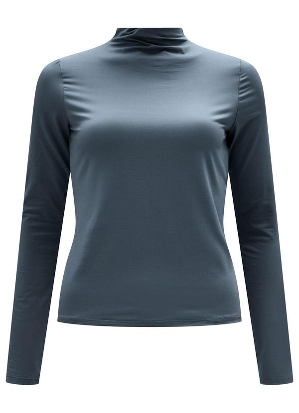 Lunender - Blusa Básica com Gola Alta em Malha Azul