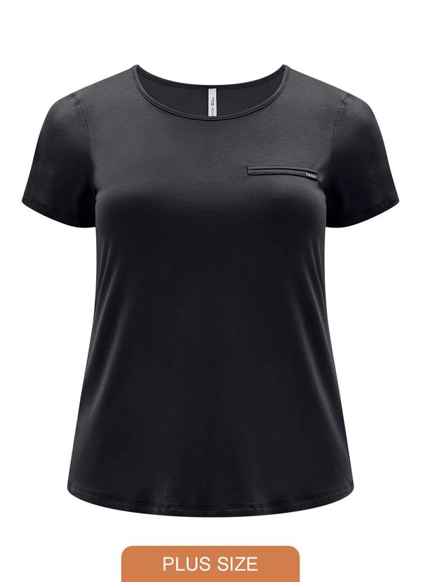 Lunender Mais Mulher - Blusa Básica Manga Curta Detalhe Frontal Preto