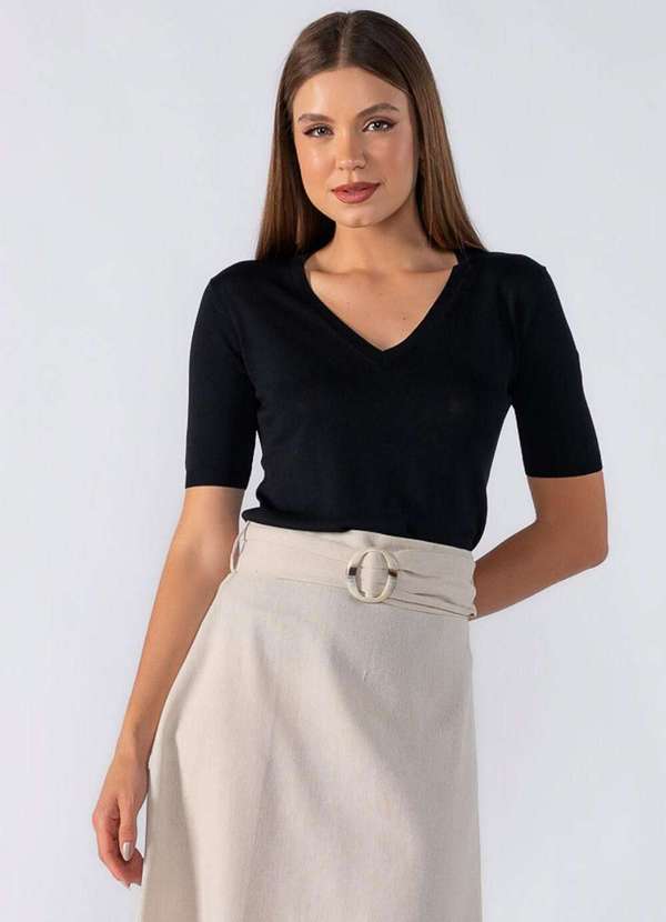 Lamis - Blusa Basica Tricot Manga Curta Preto