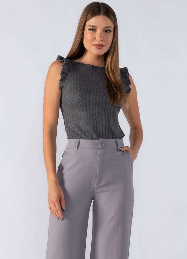 Lamis - Blusa Canelada Babado Manga Cinza
