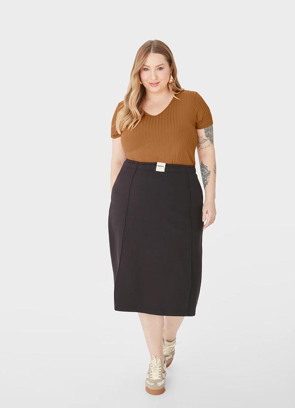 Malwee - Blusa Canelada Decote V Feminino Malwee Marrom
