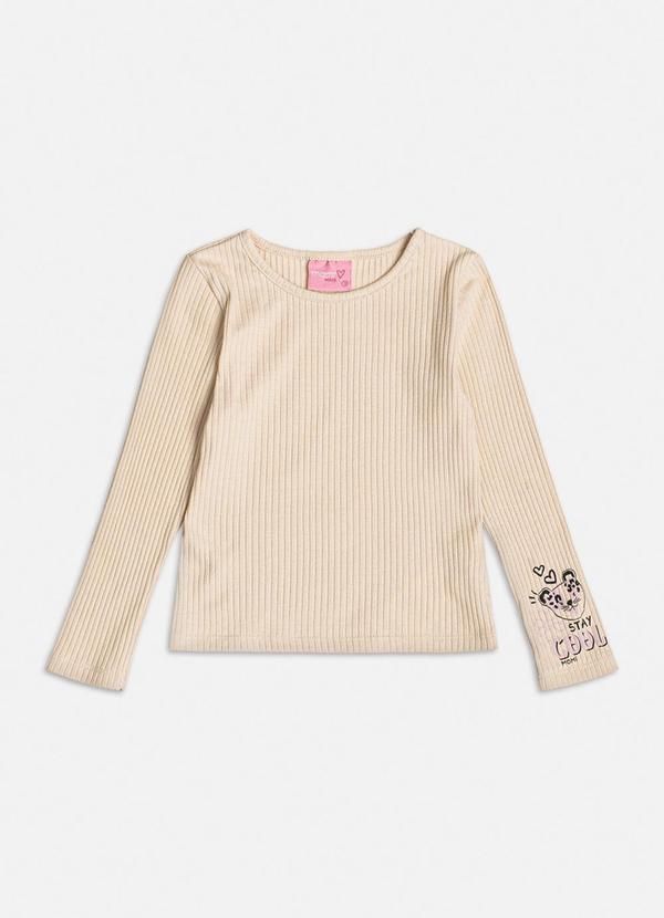 Momi - Blusa Canelada Estampa de Oncinha Bege