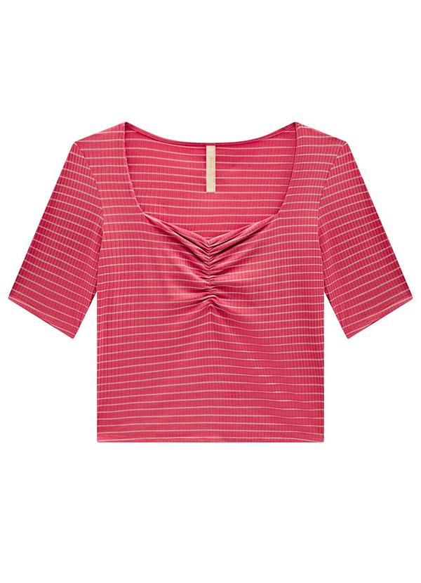 Lunender - Blusa Canelada Listrada com Franzido Busto Rosa