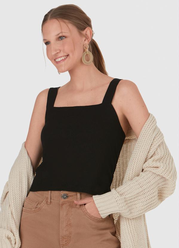 Malwee - Blusa Canelado de Viscose Alças Preto