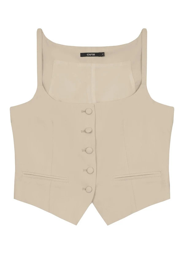 Enfim - Blusa Colete em Viscose Sarja Areia