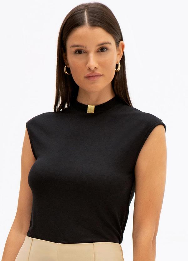 Principessa - Blusa com Aviamento Dourado Celina Preto
