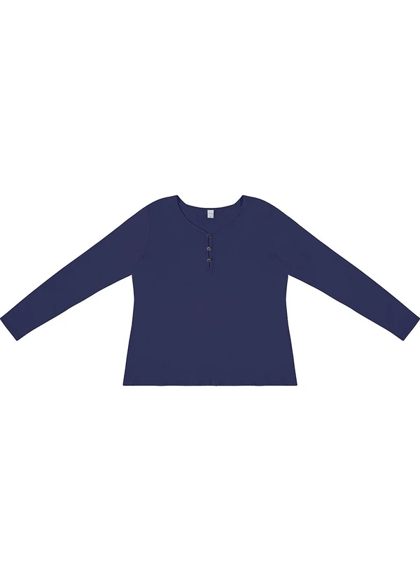 Rovitex - Blusa com Botões Manga Longa Azul
