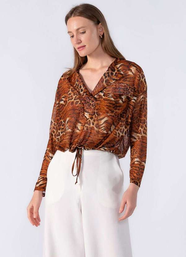 Lamis - Blusa com Cordao Regulavel na Cintura Marrom