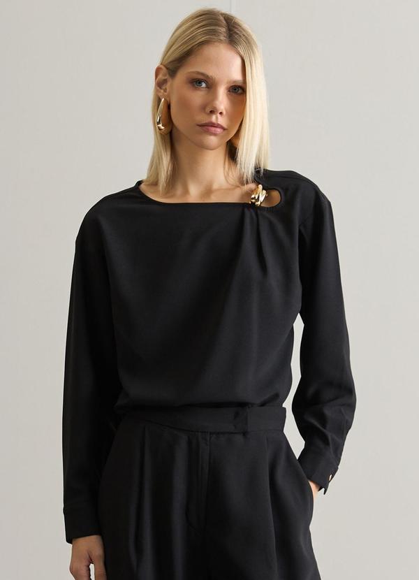Carlota Costa - Blusa com Mangas Longas com Detalhe Gola Preto