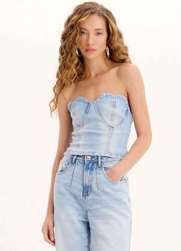 My Favorite - Blusa Corset Curta Jeans sem Alças A0004