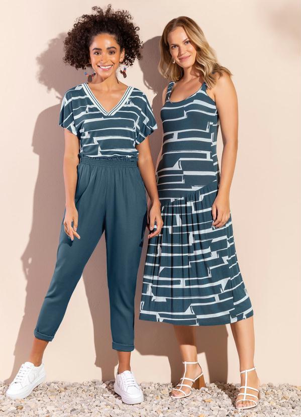 Marialícia - Blusa Criativa Comfy Decote com Retilínea Azul