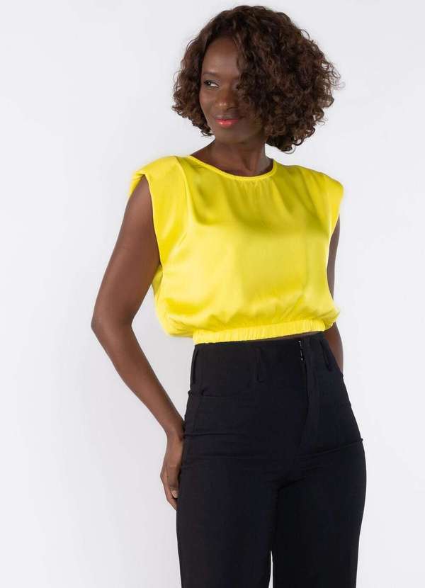 Lamis - Blusa Cropped com Ombreiras e Elastico na Barra Amarelo