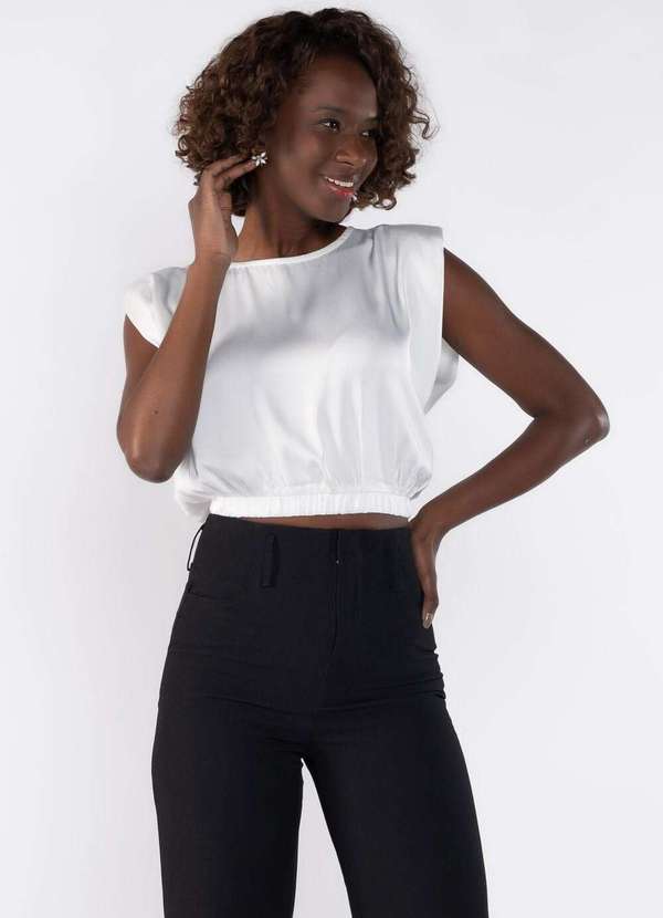 Lamis - Blusa Cropped com Ombreiras e Elastico na Barra Branco