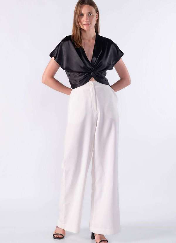 Blusa curta acetinada com detalhe frontal Dica: Usar com saia midi e scarpin Composição:97%poliester 03%elastano Modelo usa:Tamanho P - Medidas 1,78 de altura | 55kg.
