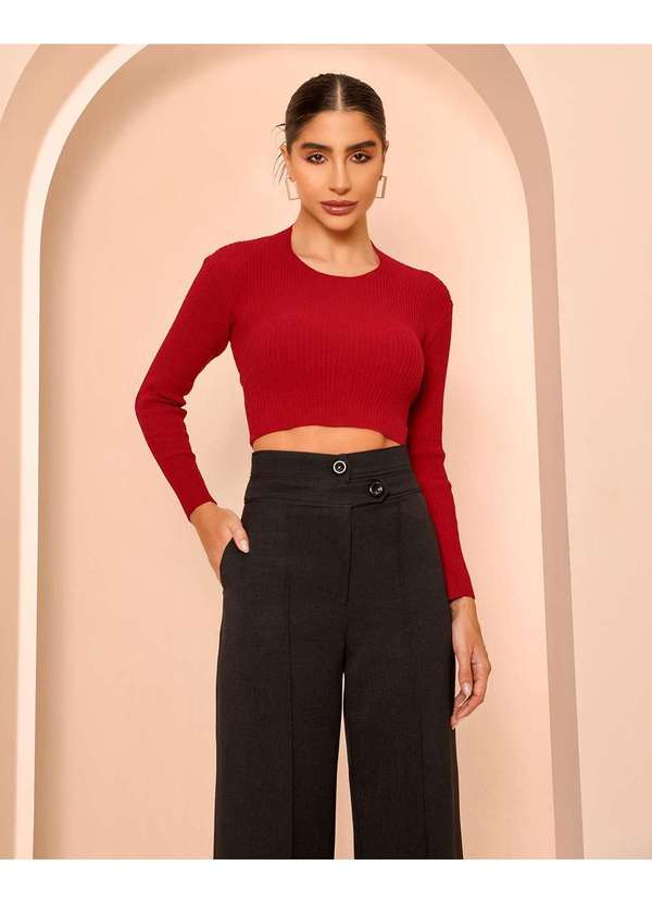 Dot Clothing - Blusa Cropped Dot Clothing Manga Longa Bordo Vermelho