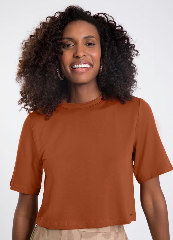 Lunender - Blusa Cropped em Malha Básica Terracota