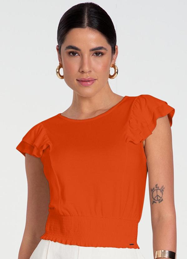 Lunender - Blusa Cropped em Malha Viscose Babados Laranja